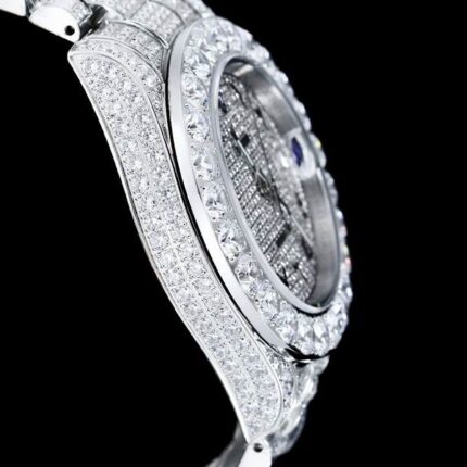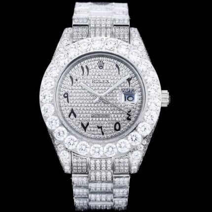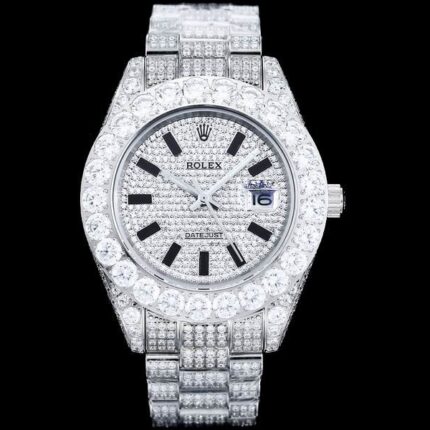 Iced Out Date Just Rolex 42mm White Dial
