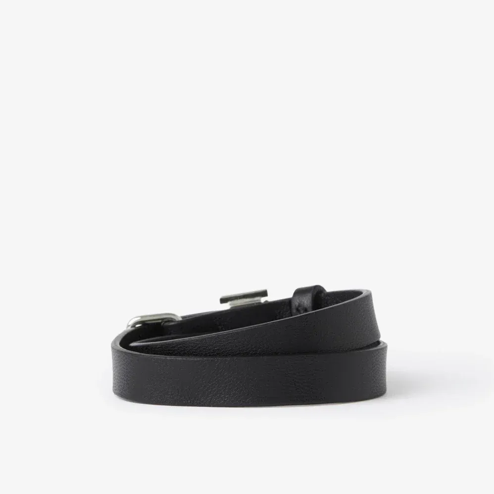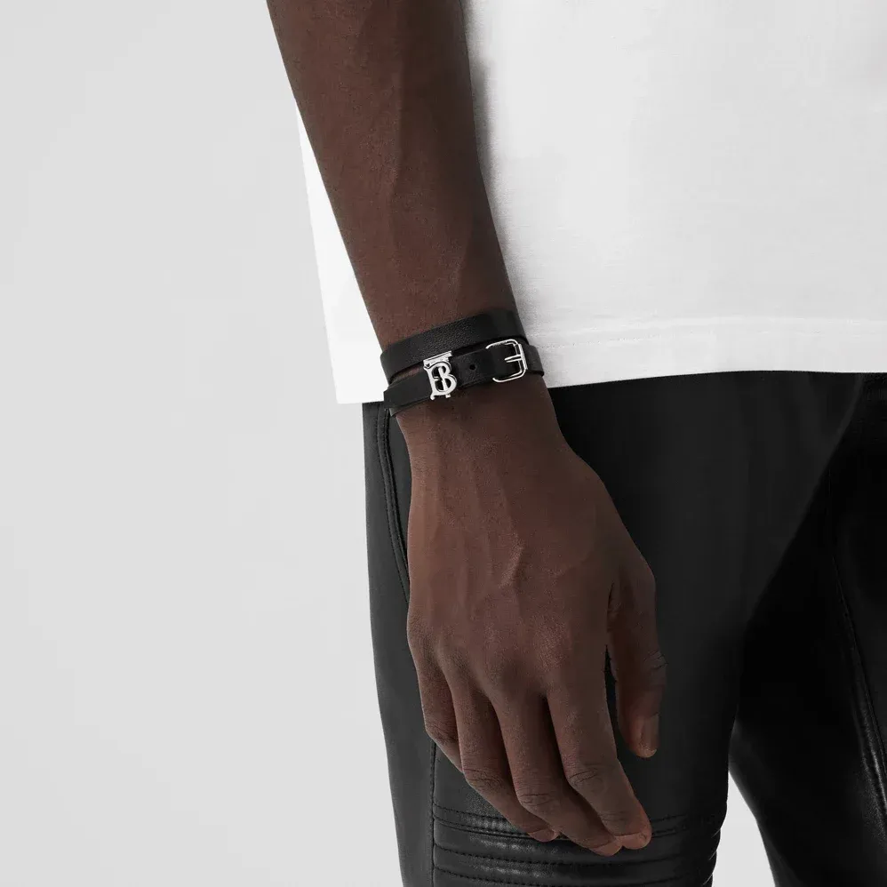 Burberry Leather Silver Logo Bracelet